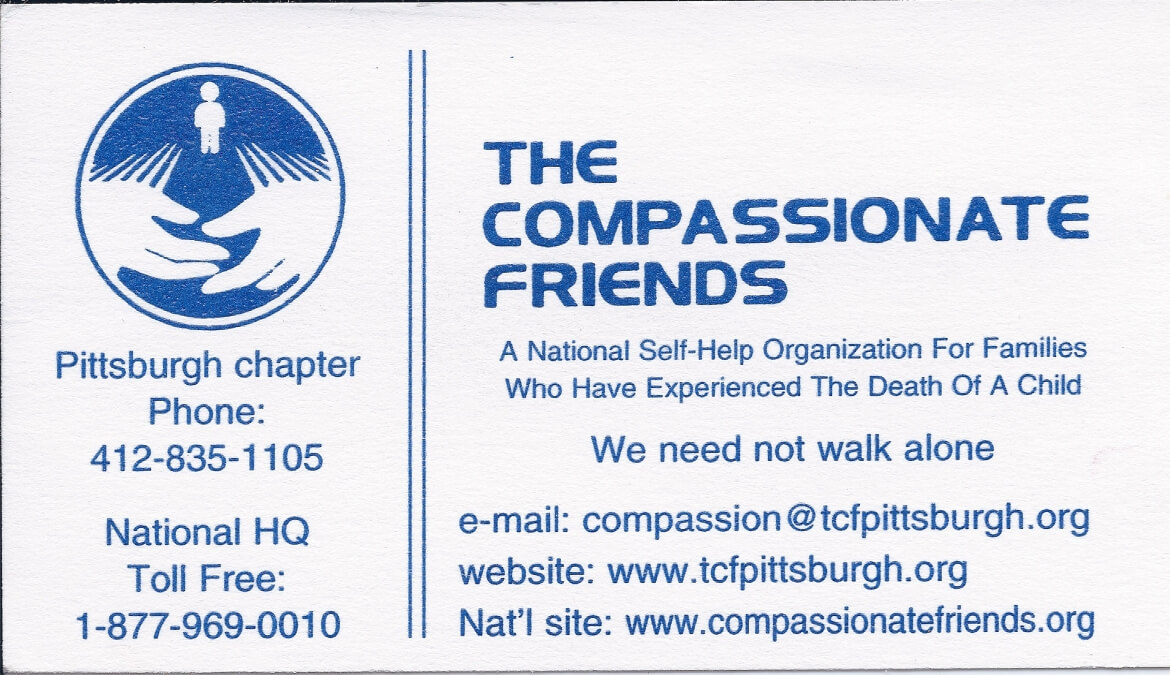 The Compassionate Friends | 412- 835-1105 - Pgh | 877-969-0010 - National | www.compassionatefriends.org