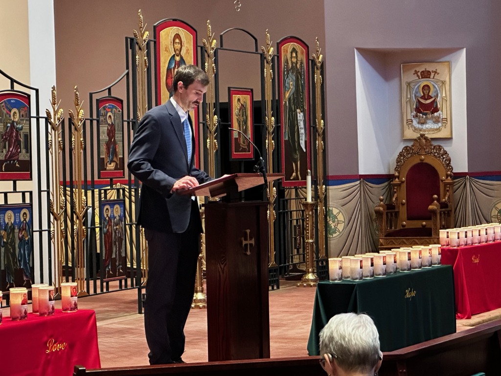 A brief welcome was provided by Marty Bovee of the St. John the Baptist Byzantine Catholic Cathedral on behalf of Fr. Andrew Deskevitch, who was unable to participate this year.