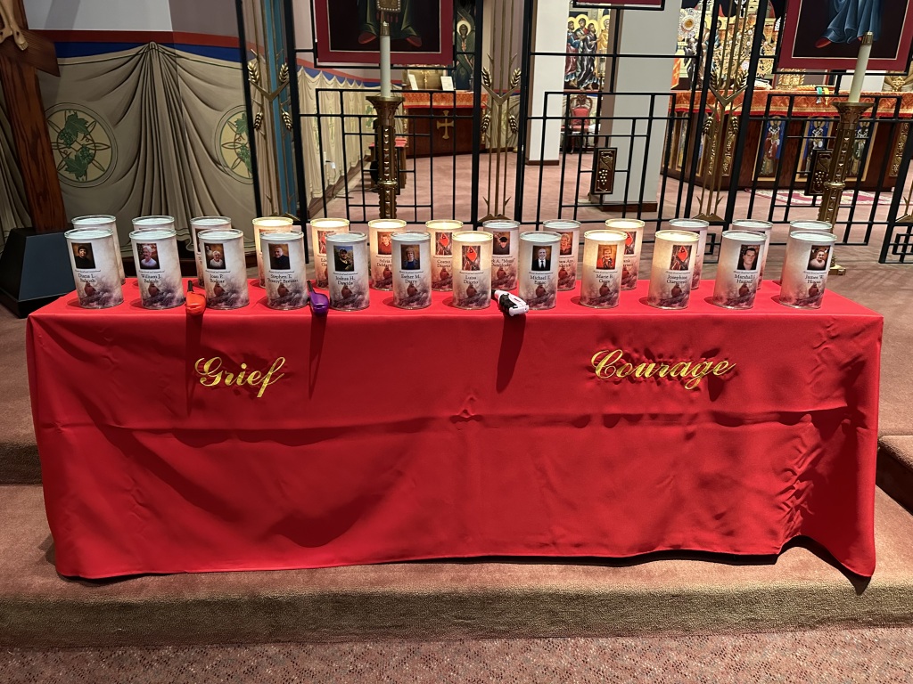 Meditations were given by Fr. Nick Mastrangelo of St. Therese R.C. Church and Fr. Andrew Deskevich, of St. Elias Byzantine Catholic Church. During the service the names of the deceased were read and then each family received ornaments in remembrance of their loved one. Musical arrangements were conducted by Tom Coyne.