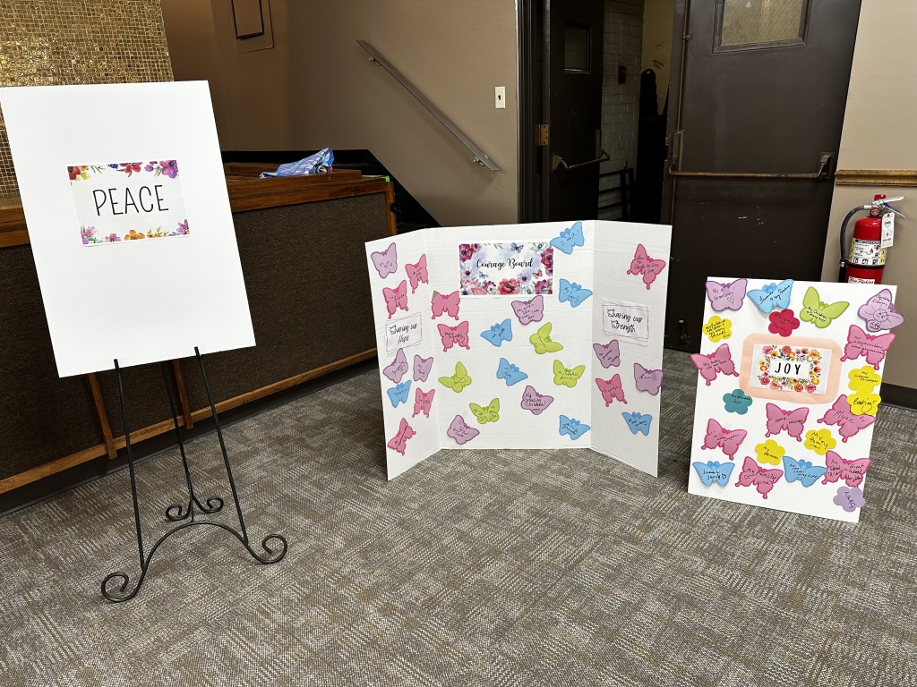 This year’s theme was “peace” and we talked about finding peace within our hearts and minds by focusing on the good around us and starting with a smile. We are reminded that we are never alone and we can always lean on one another.